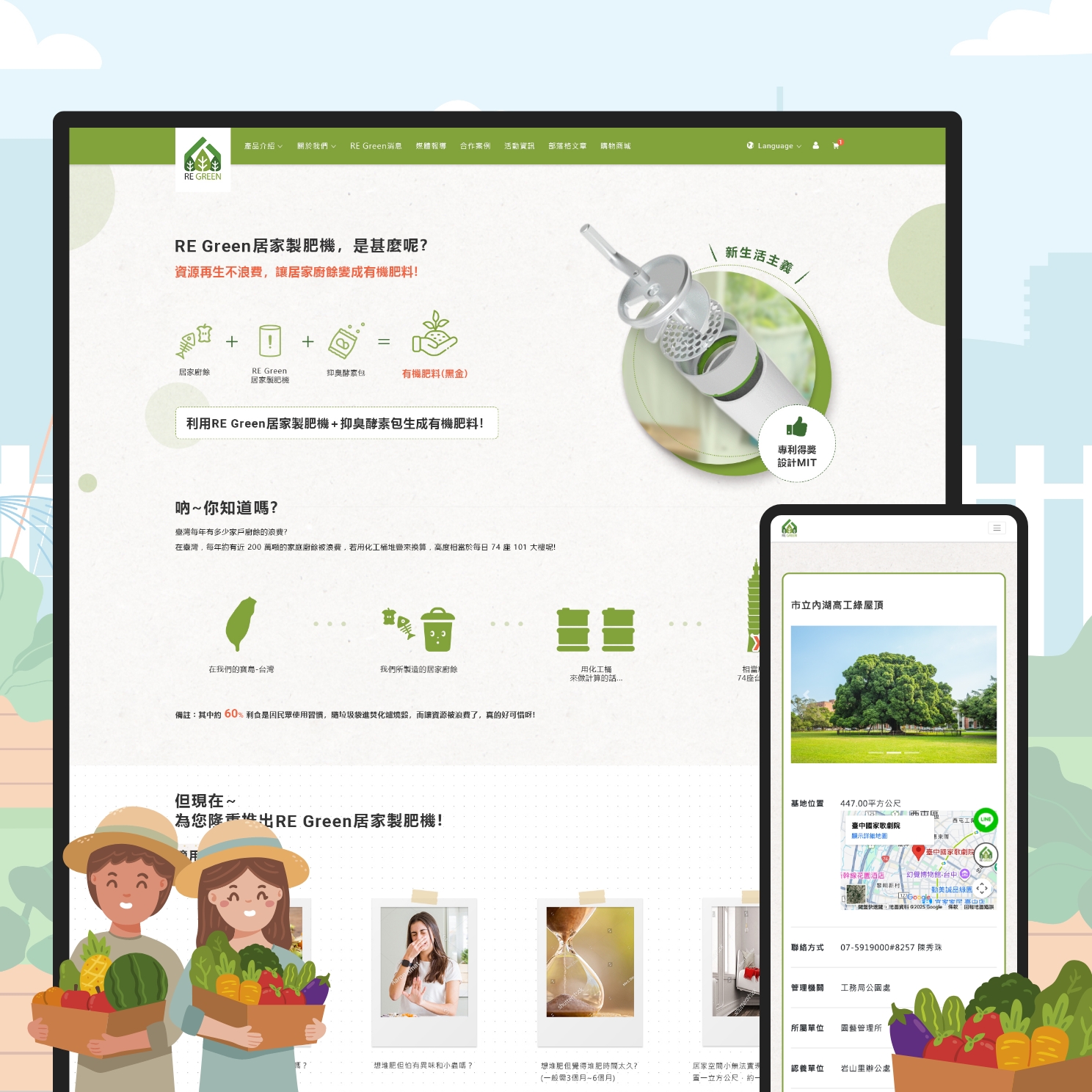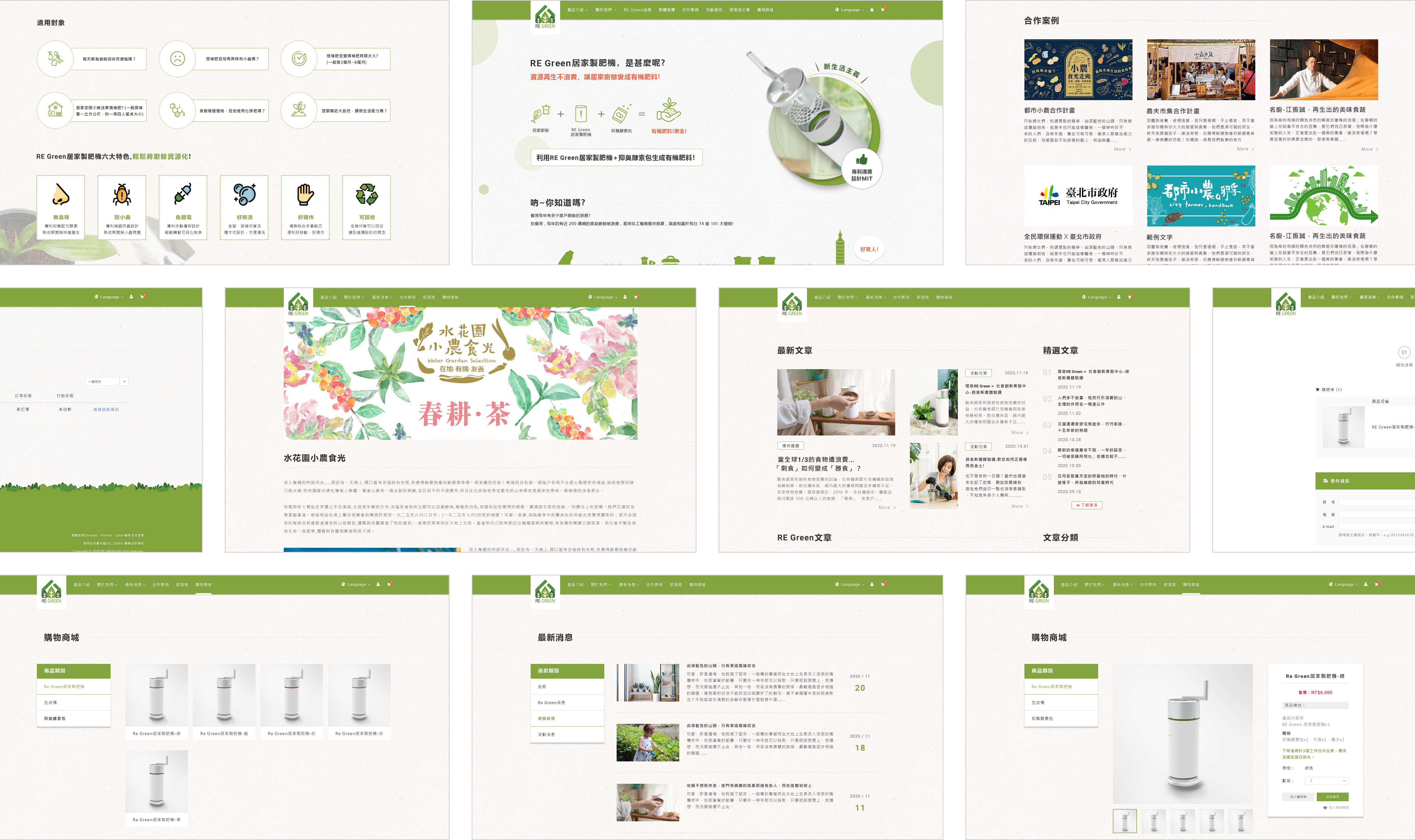 RE GREEN Digital Experience Design. I designed a complete digital ecosystem for RE GREEN—an enzyme-based kitchen composter—transforming it from a standalone product into a community-driven circular economy platform. The system includes a brand website, e-commerce platform, and a value-added service that connects users with urban farms, enabling them to exchange homemade fertilizer for fresh produce.