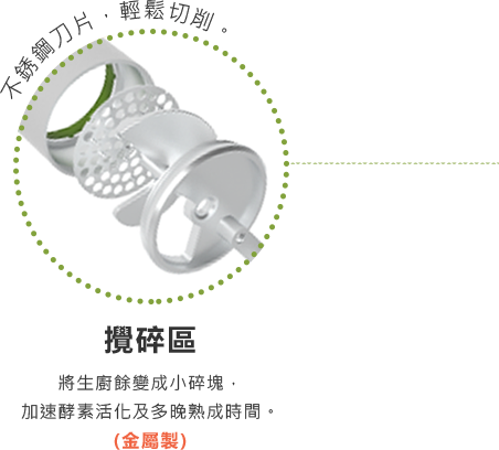 內容 | 附有安全攪碎裝置 通氣桶、通氣蓋 通氣管及液肥收集盒 |