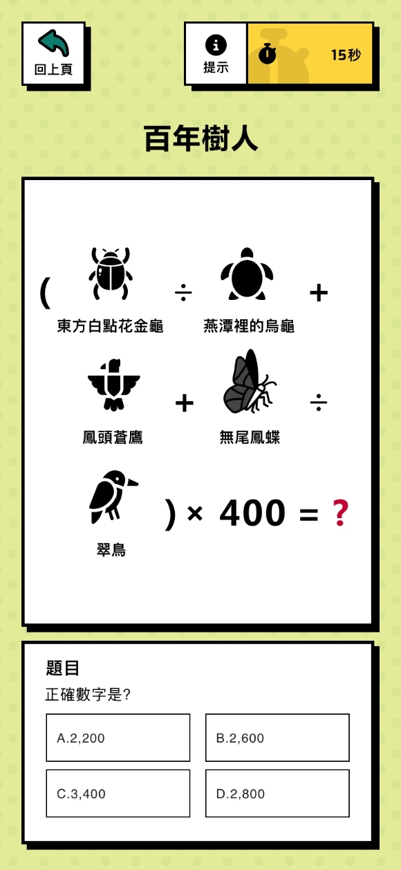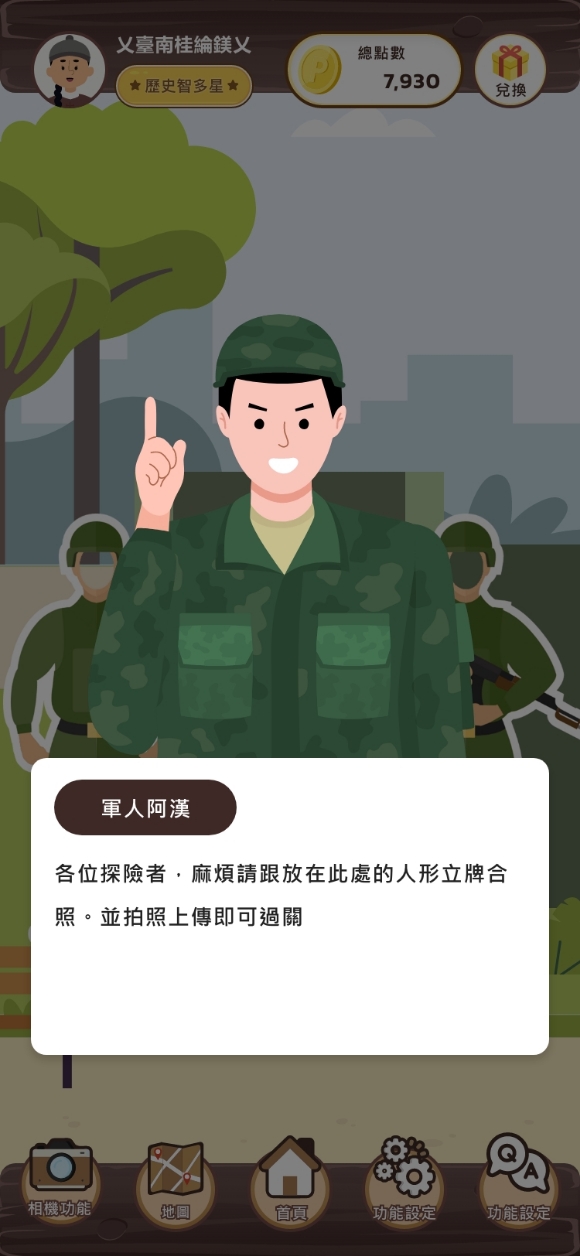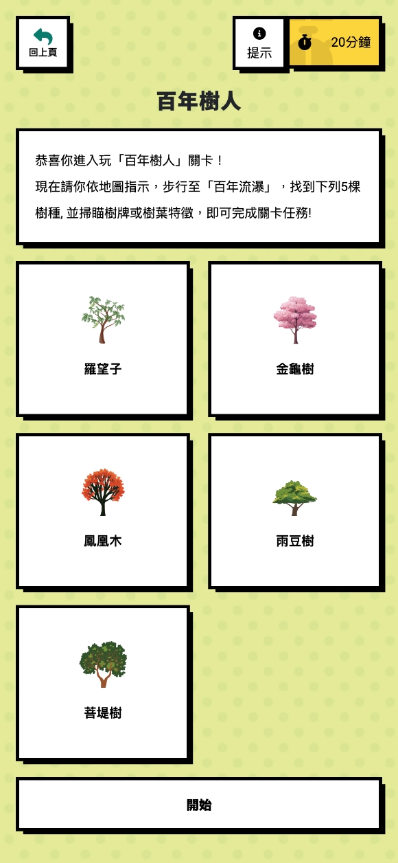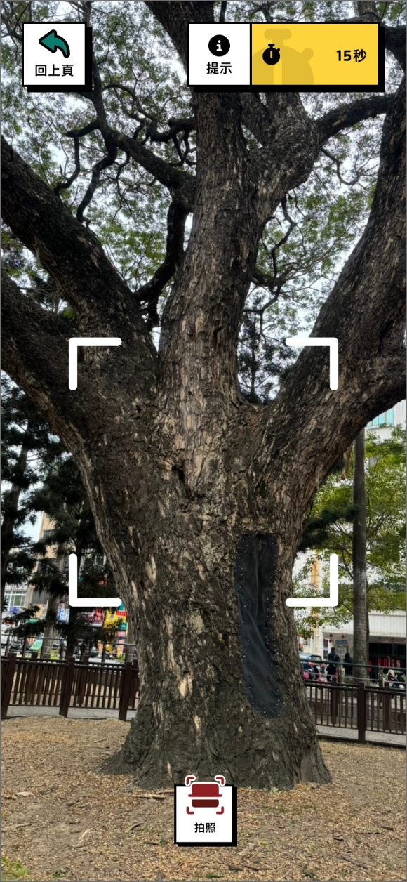 Explore Tainan Park and follow the instructions to find specific tree species. Scanned by the camera, the program determines if the player has found the correct tree species.