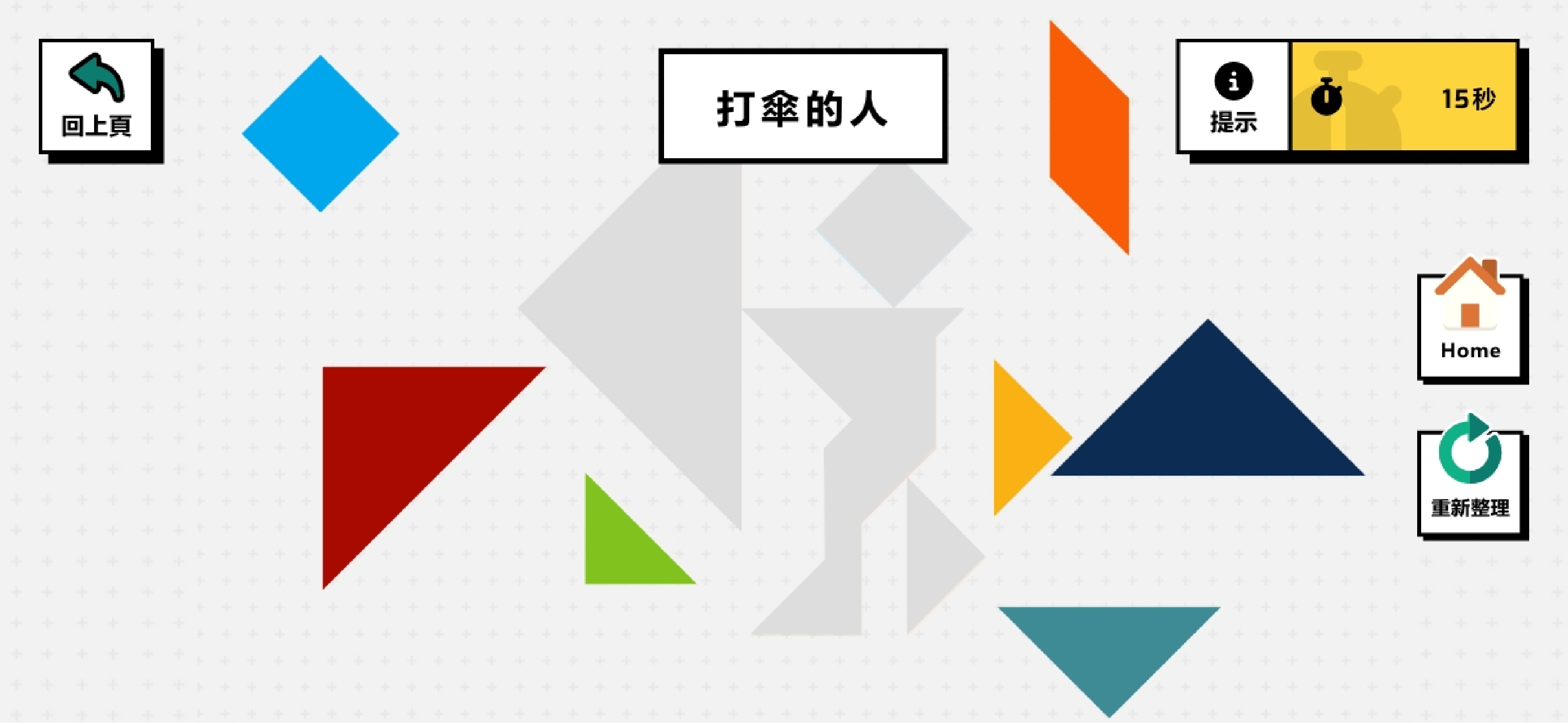 Challenge the ancient Tangram and combine them into specific shapes within the time limit, testing your spatial imagination, logical thinking, and problem-solving skills.