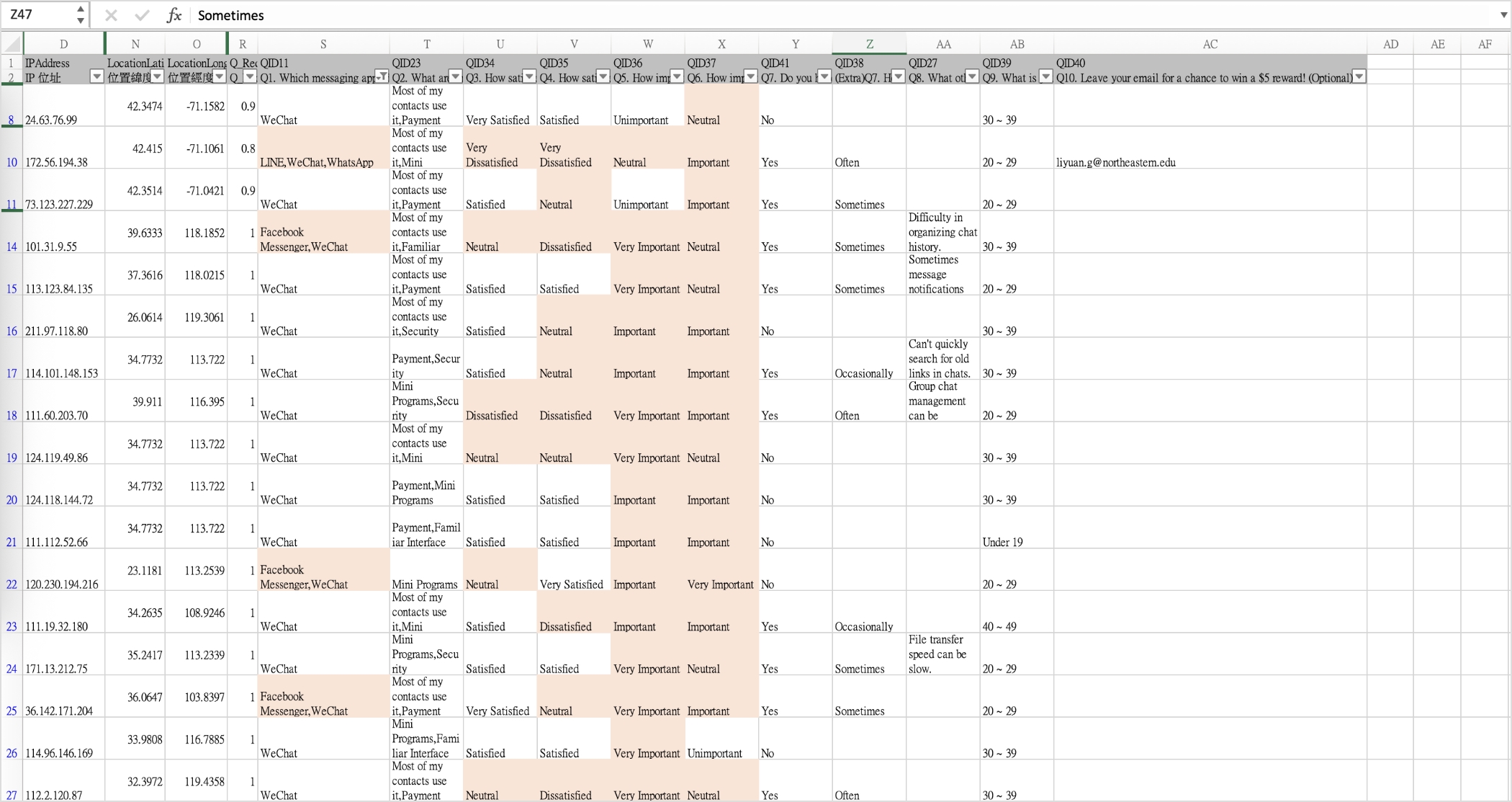 A total of 74 questionnaires were collected, with 57 deemed valid and 44 responses directly related to the research objectives. The study mainly focuses on users’ satisfaction and demands concerning chat room functionalities.