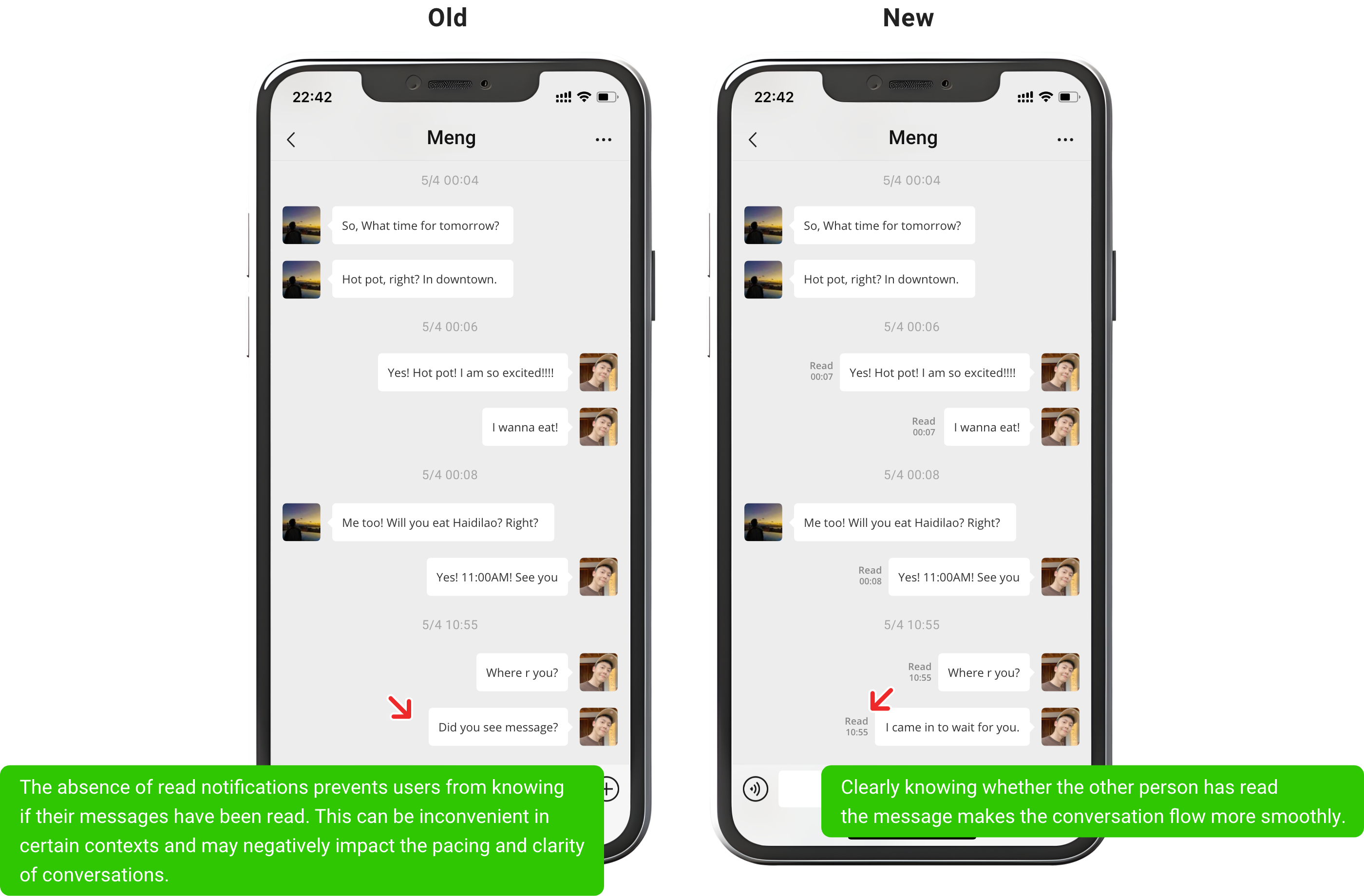 Survey shows that 86% of users want this feature. It is recommended to provide a toggle option, allowing users to decide whether to display read receipts for individual or group chats based on their preferences.
